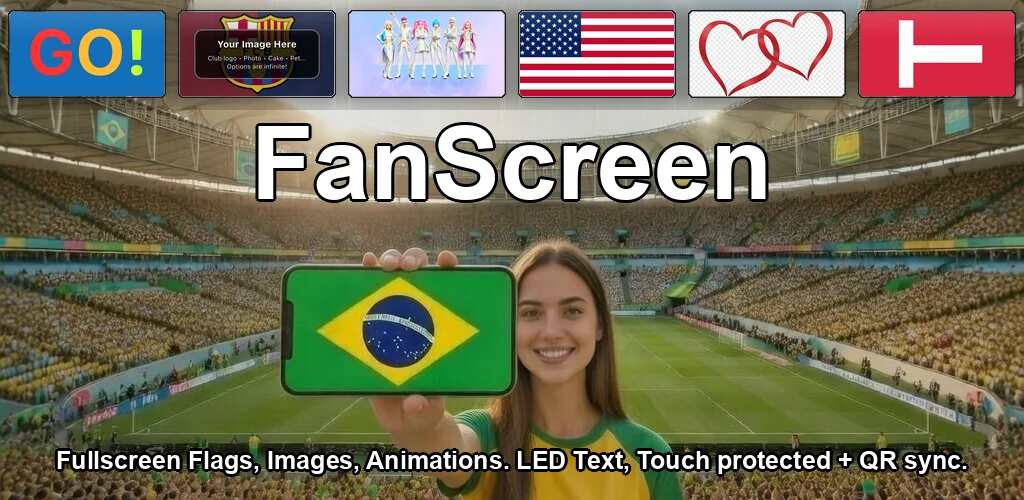 Yes, FanScreen is 100% free with no ads, no in-app purchases, and no ad tracking. All 250+ flags and 16 text animations are included at no cost.
